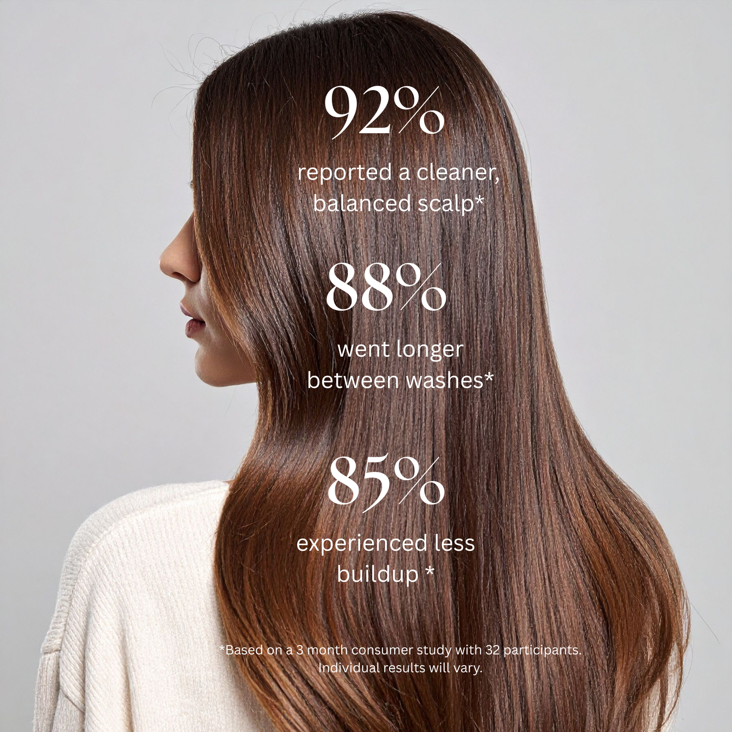 Hair feels lighter, fresher, and naturally more voluminous, while the scalp feels clean, balanced, and comfortable. No tightness, no dryness - just a fresh, reset feeling that lasts longer between washes.
