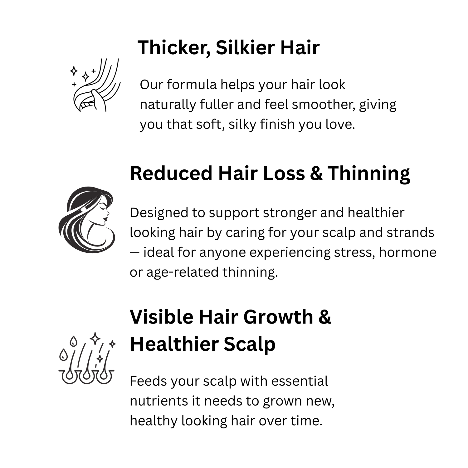 Suitable for every hair type, texture, and age. Even customers who were sceptical report they noticed fuller-looking hair and a healthier feel after just a few weeks.